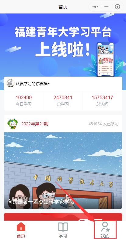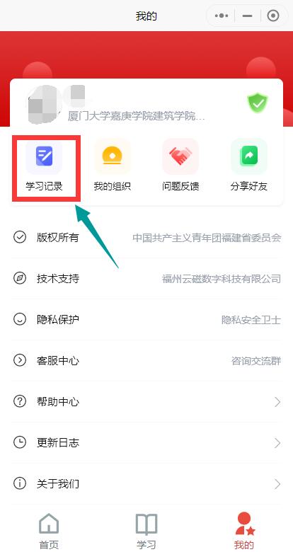 登录“福建青年大学习”微信小程序——我的——学习记录——组织学习情况——输入“组织编码”(见上表)